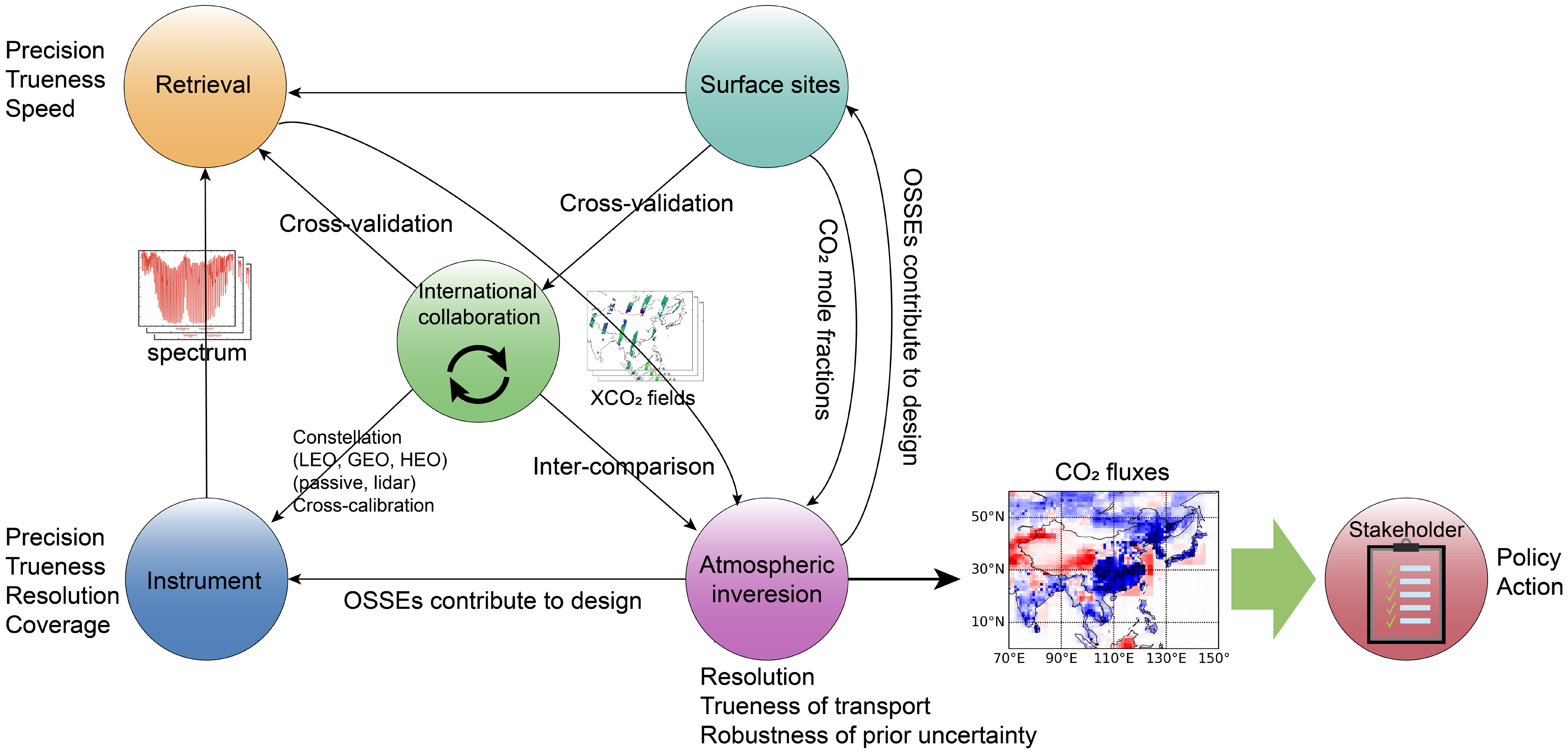 图2 基于CO2卫星观测的中国陆地碳汇估算的发展方向