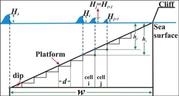 对于长地质时期的海岸地貌,由于无法获得各时期准确的海底地形和远场波浪条件,使得基于过程的数值模型无法适用。2014年,基岩海岸地貌学家Sunamura针对该问题提出一套模型,却仅适用于倾向近乎水平的海蚀平台,其对于倾斜海蚀平台适用性及其参数的准确性,成为制约该模型推广和应用的关键问题,尤其在海岸侵蚀的防灾减灾领域。
