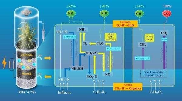 微生物燃料电池耦合人工湿地对多种气体的协同减排机制