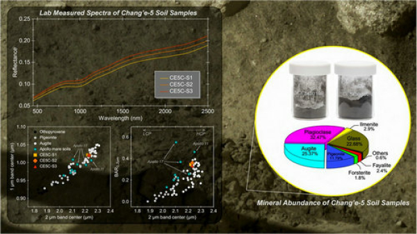 中国科公司国家天文台研究员李春来、刘建军带领团队,结合嫦娥五号月球样品的实验室分析结果和遥感探测数据,解答了此前对月球晚期玄武岩遥感光谱解译的疑惑,纠正了月球晚期玄武岩独特遥感光谱特征的物质成分解译结果。