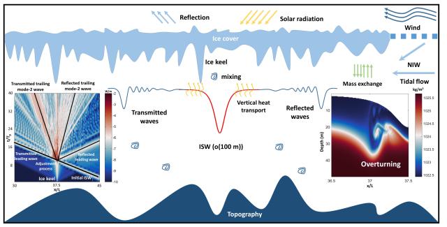 自挪威探险家弗里乔夫·南森120余年前在北极首次发现内波活动并命名为“死水现象”后,北极内波研究因观测匮乏而进展缓慢。全球变暖引起北极海冰覆盖快速衰退,遥感手段也不断探测到北极频繁内孤立波活动。低纬度内波主要受到地形动力驱动作用,而北极的冰下环境是一种独特的动力调制引子,但关于北极内波和海冰动力交互和热量传输过程尚缺乏明确的科学认识。