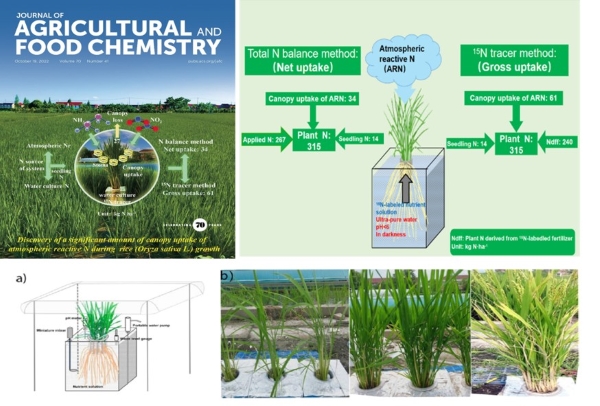 近日,上述研究成果已分别在线发表于Journal of Agricultural and Food Chemistry(封面文章;Discovery of a significant amount of canopy uptake of atmospheric reactive N during rice growth)和European Journal of Agronomy上。田玉华博士为上述论文第一作者, 赵旭研究员为论文通讯作者。以上研究工作得到中科院青年创新促进会优秀会员基金(Y201956)、 “十三五”和“十四五”科技部重点研发计划项目课题(2017YFD0200104、2021YFD1700805) 资助。