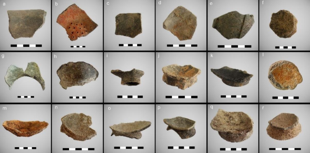 近年来公司人文与社会科学公司科技史与科技考古系杨玉璋教授团队与湖北省文物考古研究院姚凌副研究员等合作,利用淀粉粒分析方法,对位于江汉平原北缘的屈家岭遗址(5800-4200BP)(图1)出土陶器表面残留物进行了提取与分析(图2),揭示了该遗址油子岭文化至石家河文化时期先民日常消费的植物性食物来源与结构演化。相关成果于10月18日以“Plant foods consumed at the Neolithic site of Qujialing (ca. 5800-4200 BP) in Jianghan Plain of the middle catchment of Yangtze River, China”为题发表于国际植物学著名杂志Frontiersin Plant Science上。