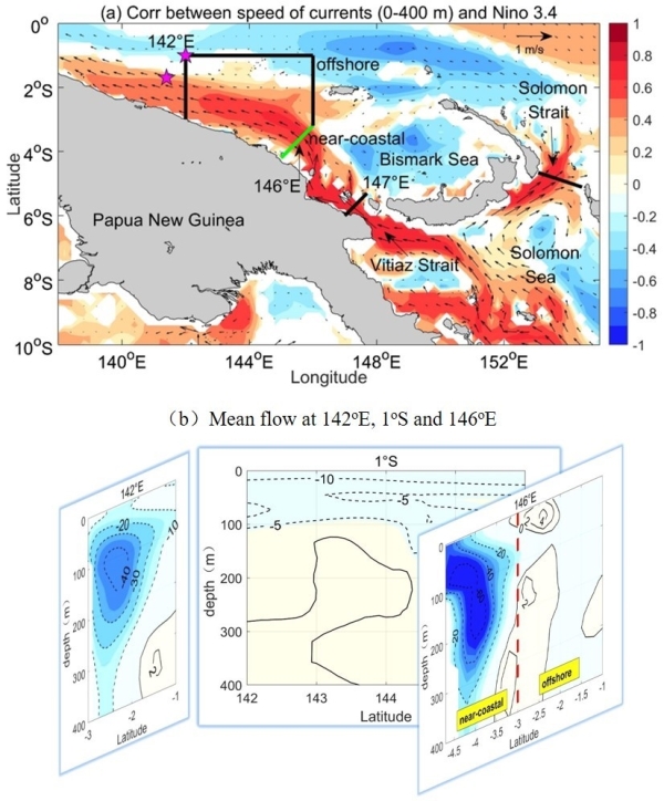 近日,中国科公司院士、中科院海洋研究所研究员胡敦欣团队在《地球物理研究杂志:海洋》(Journal of Geophysical Research: Oceans)上以Currents off the Papua New Guinea coast during and after the El Nino of 2015-2016为题发表最新研究成果。该研究揭示了2015-2016年极端El Nino事件期间热带太平洋西边界流-新几内亚沿岸潜流的变化规律,以及年际信号的空间分布特征及其与上游环流之间的关系。