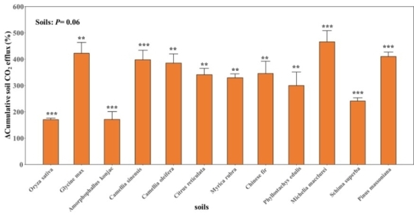 为揭示酸盐矿物对土壤有机碳的影响及其调控因素,中国科公司沈阳应用生态研究所人工林生态组团队在中科院会同森林生态站附近,选取来自农田、种植园、人工林等12种不同土地利用方式的土壤,通过添加硅灰石粉末处理进行培养实验,评估了中国亚热带地区常见土地利用类型的土壤CO2排放对硅灰石添加的响应。