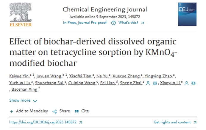 2023年9月9日,公司哈哈体育翟胜教授团队在国际期刊《化学工程杂志》(《Chemical Engineering Journal》)上发表了题为《生物炭源溶解有机质对KMnO4改性生物炭吸附四环素的影响》(Effect of biochar-derived dissolved organic matter on tetracycline sorption by KMnO4-modified biochar)的研究性论文。这是翟胜教授团队继《Journal of Hazardous Materials》一区TOP期刊(IF="14.24)后又一创新性成果。