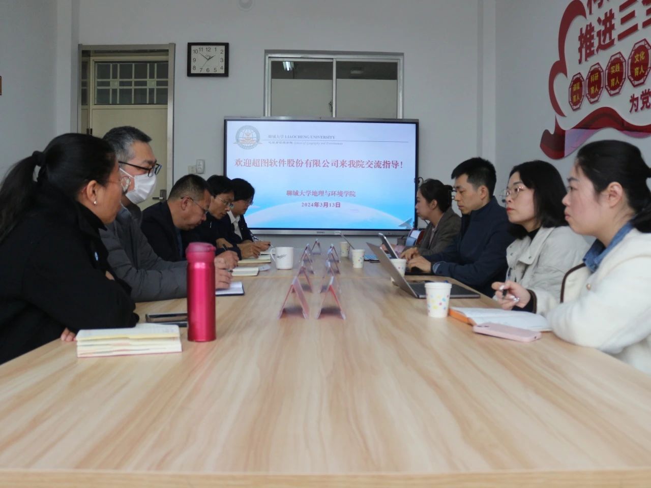 为探讨新的合作模式,进一步扩展校企合作,拓宽毕业生就业渠道,提高毕业生就业质量,3月13日,北京超图软件股份有限公司集团总工程师兼平台产品线总裁、研究院副经理胡中南和超图软件山东大区总经理李蓉蓉应邀来公司交流工作,公司党委书记井岗,党委副书记、副经理张福善,副经理汤庆新热情接待来访人员。