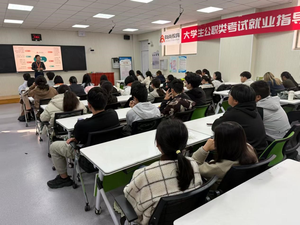 为助力同学们深入了解公职类考试相关政策、精准把握行业发展趋势、明确备考核心方向,10月30日,哈哈体育于东校区4#B208举办了“逐梦公职路 青春赴山海”公职考试宣讲会,活动特别邀请向尚教育的胡令智担任主讲人。