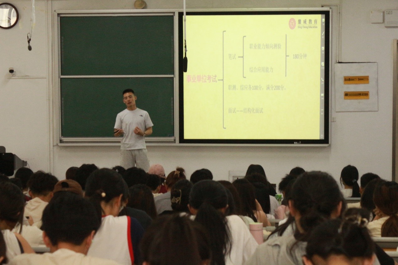 为帮助同学们更好的做好自身职业规划,提升员工对公职类考试的备考经验和应对能力,5月30日下午,公司在4#教学楼A203教室举办“公职类考试及就业指导”专题讲座,讲座由哈哈体育承办。讲座特邀鼎成教育首席品牌宣讲师王东庆老师主讲,公司100余名员工参加讲座。