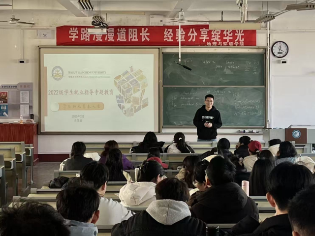 活动中,岳老师紧扣22级员工“即将求职实战”的需求,从三方面展开讲解。就业形势分析环节,他用详实数据解读市场竞争态势,聚焦地理与环境领域,梳理出自然资源部门、环保类国企央企等适配就业方向,提醒关注“双碳”下绿色岗位机会,同时分析专业匹配度、实践经验等挑战,引导员工结合研究方向与专业优势定位。